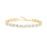 This stunning baguette prong set tennis bracelet is the perfect accessory for an elevated everyday look. It features gorgeous baguette shape prong set stones, and easily transitions from day to night for any occasion. A great addition to add to any stack for effortless glam.