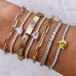 We are in love with this gorgeous fancy heart tennis bracelet. It is simply stunning on its own or can be layered for the perfect addition to your SHYMISTACK.