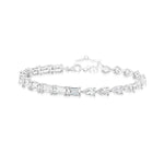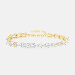 Expertly crafted with a mix of emerald and pear cut stones, this modern tennis bracelet is a must-have accessory for any occasion. Versatile and stylish, it can be worn alone or stacked with other bracelets for a glamorous touch. Elevate your look with this stunning piece.