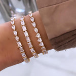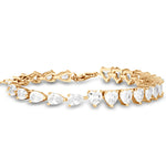 This Half Heart Half Pear Tennis Bracelet will add a sophisticated touch to your outfit. Featuring a combination of hearts and pear shape stones, this unique bracelet stands out from the typical tennis bracelet. Its eye-catching design and stylish charm make it a great choice for a special day or everyday wear.