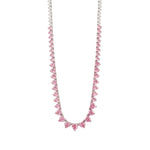 This beautiful graduated heart tennis necklace is an elegant way to make a statement. Crafted from delicate stones, it features a stunning design with stones that increase in size from 2mm to 5mm at the center. Perfect for special occasions or everyday wear.