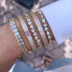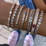 Achieve a timeless and elegant look with this Multi Shape Tennis Bracelet. Featuring an absolutely gorgeous combination of mixed shaped stones set in a prong setting, this bracelet will glisten in the light and add the perfect texture to any bracelet stack. Elevate any look with this dazzling accessory.