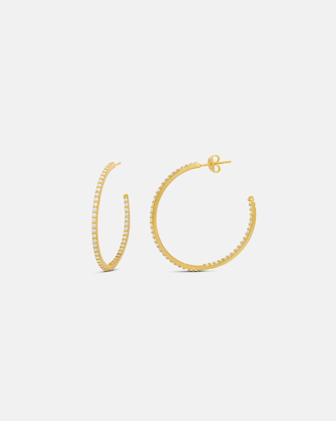 These classic Thin Pave Hoops are the perfect accessory no matter the occasion. Crafted with a minimalistic design, they add subtle beauty to any look whether day or night. Lightweight and trending, they are an updated take on a classic style.